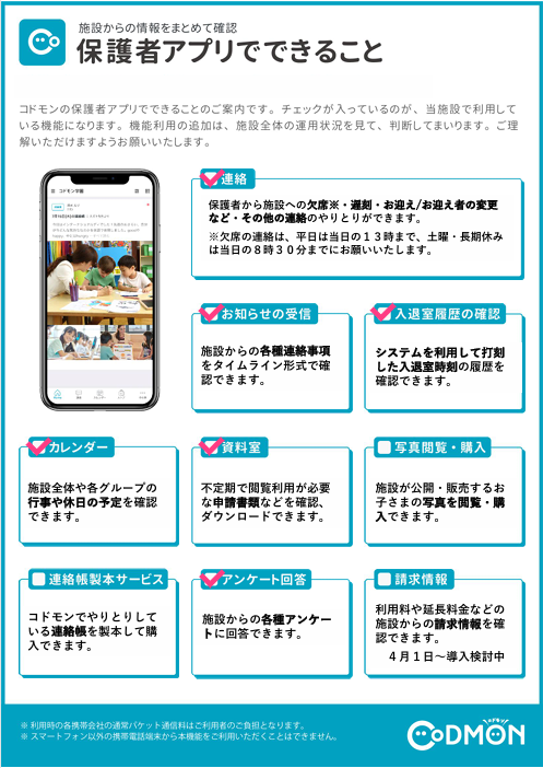 ご協力をよろしくお願いいたします。また、コドモン導入に関する詳細につきましては、各クラブのクラブ説明会でご案内をさせていただきます。